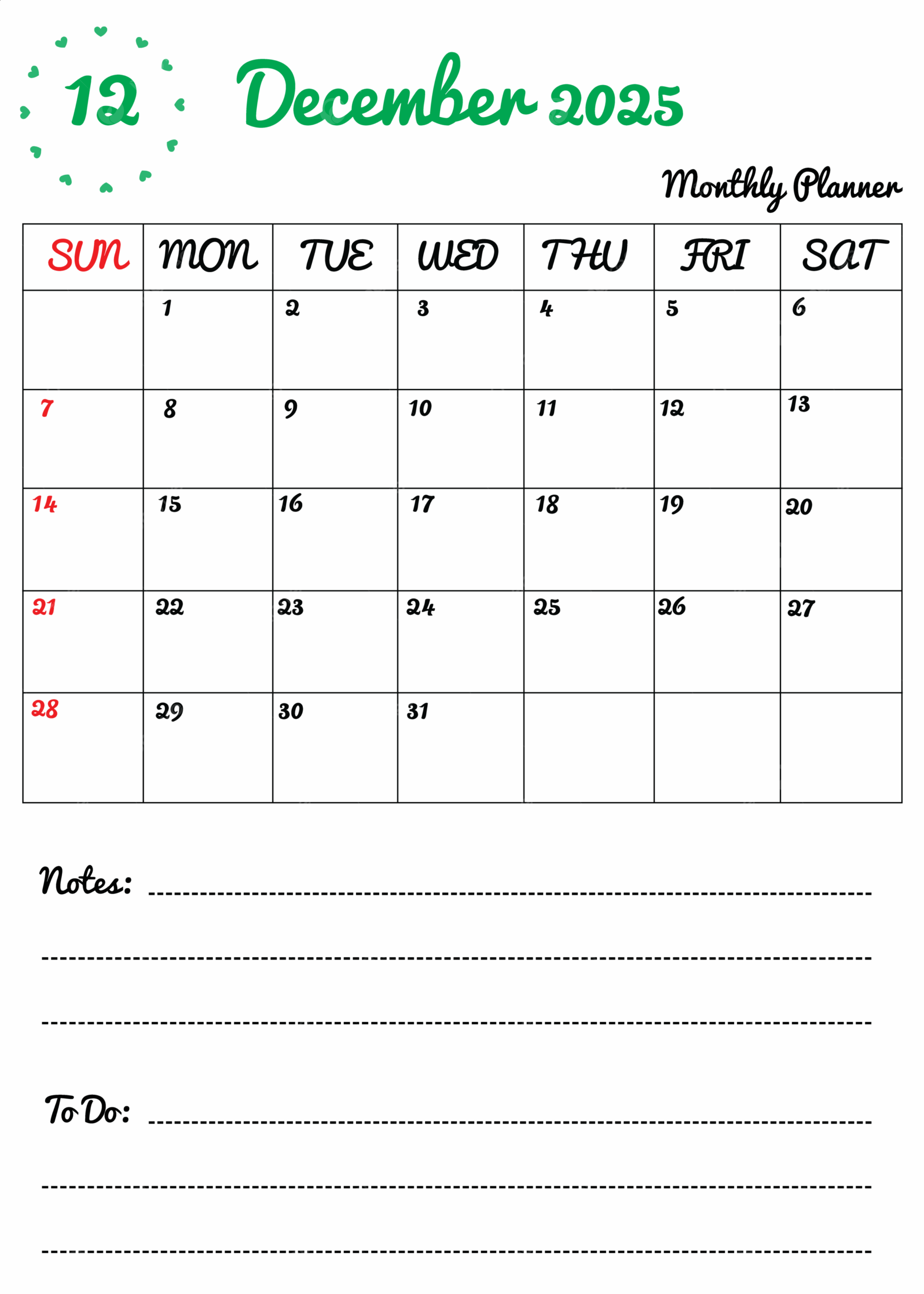 Colorful Monthly Planner Calendar Template December 2025 Cute Design Vector Template Download On Pngtree
