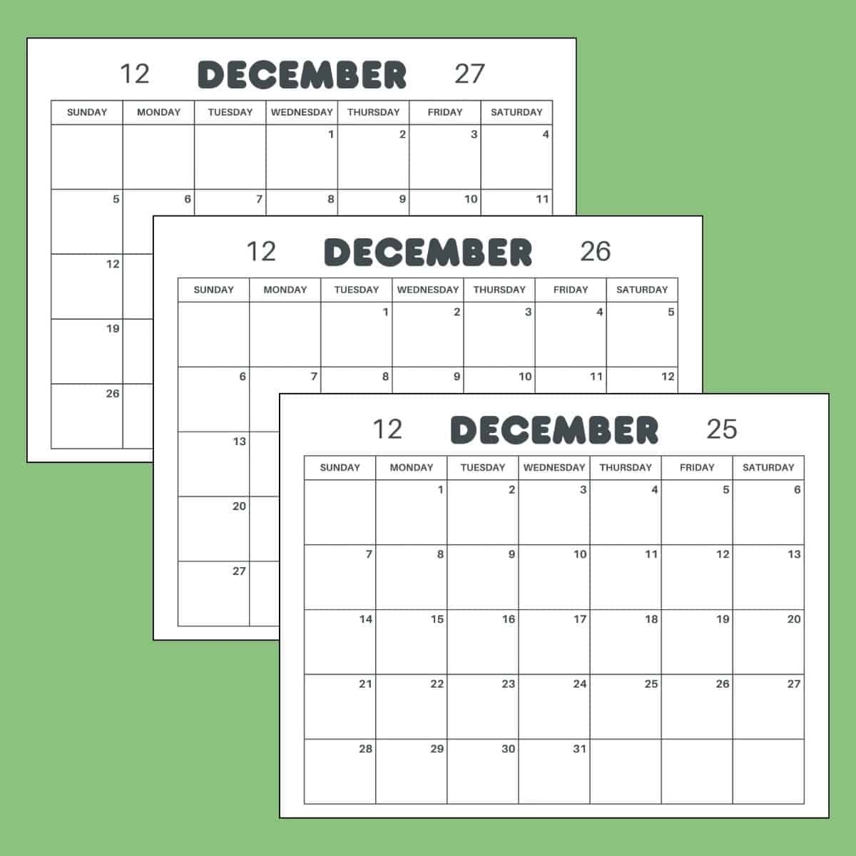 Blank December Calendar 2025 Printable