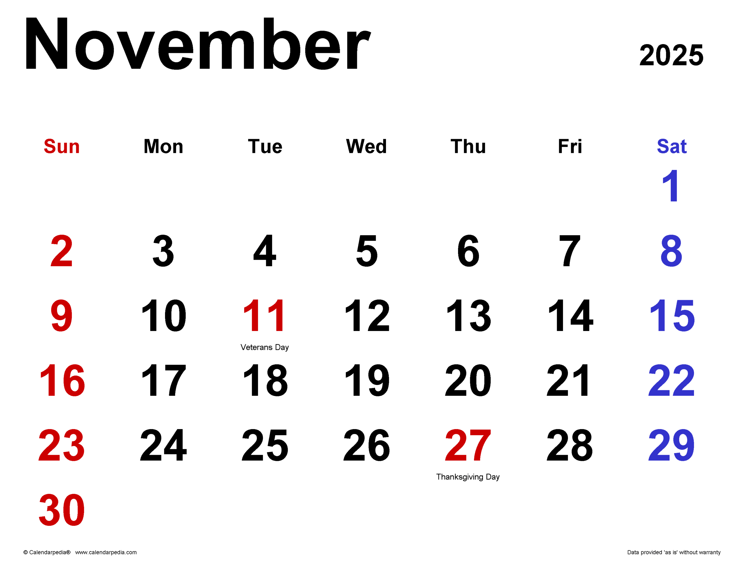 November 2025 Calendar Templates For PDF Excel And Word
