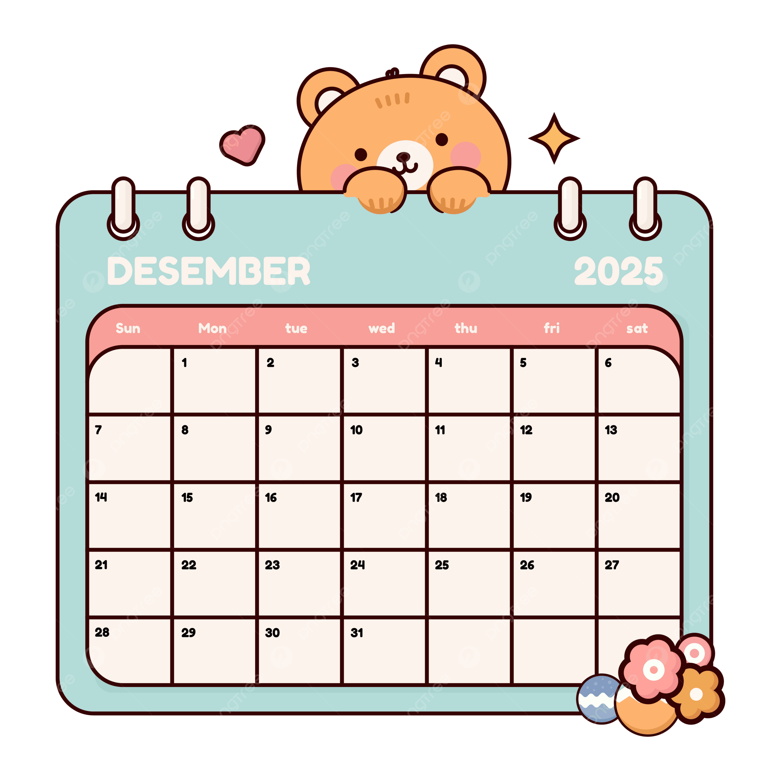 Cute Cartoon Calendar For December 2025 With A Kawaii Bear Vector Bear Clipart Cute Clipart Calendar Clipart PNG And Vector With Transparent Background For Free Download