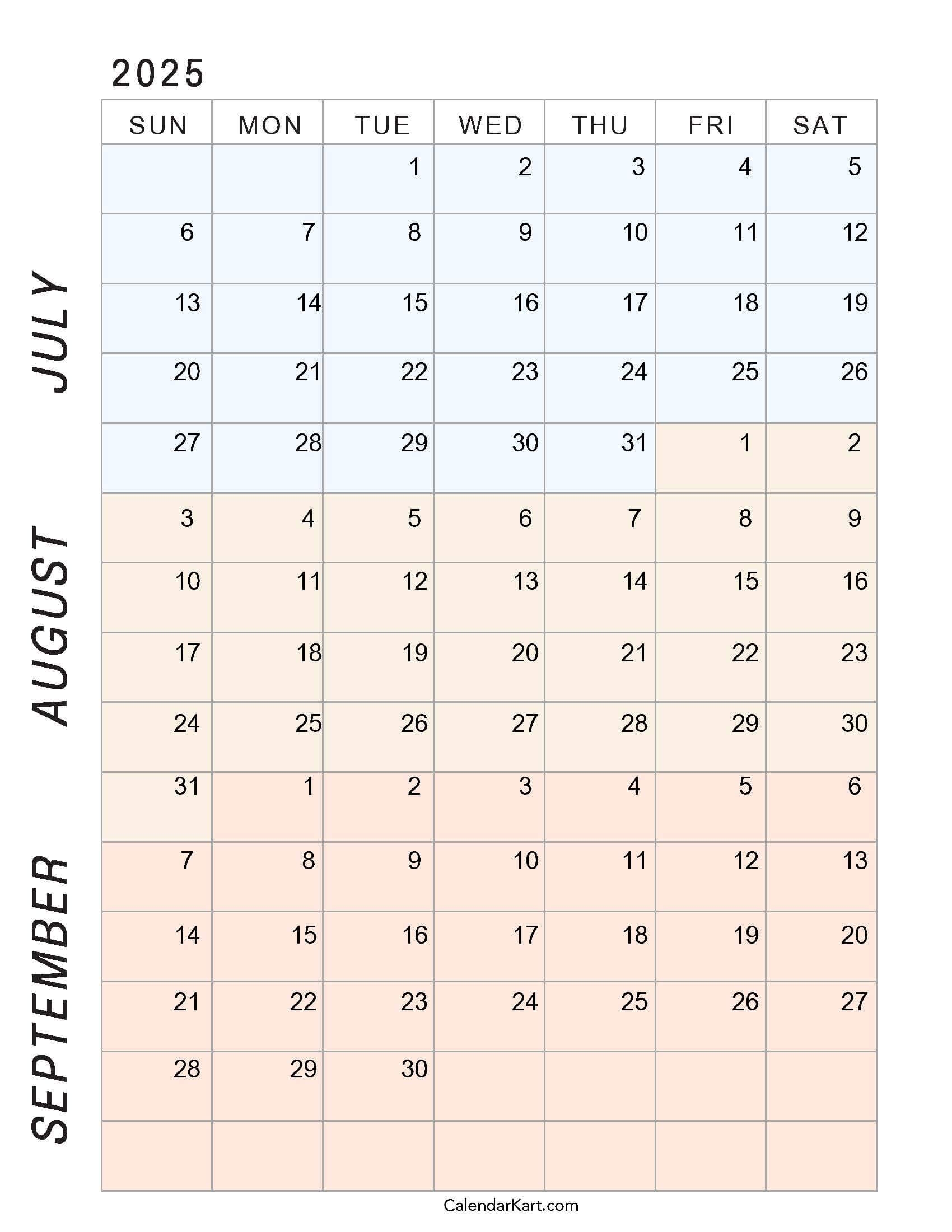 July To September 2025 Calendar Q3 CalendarKart