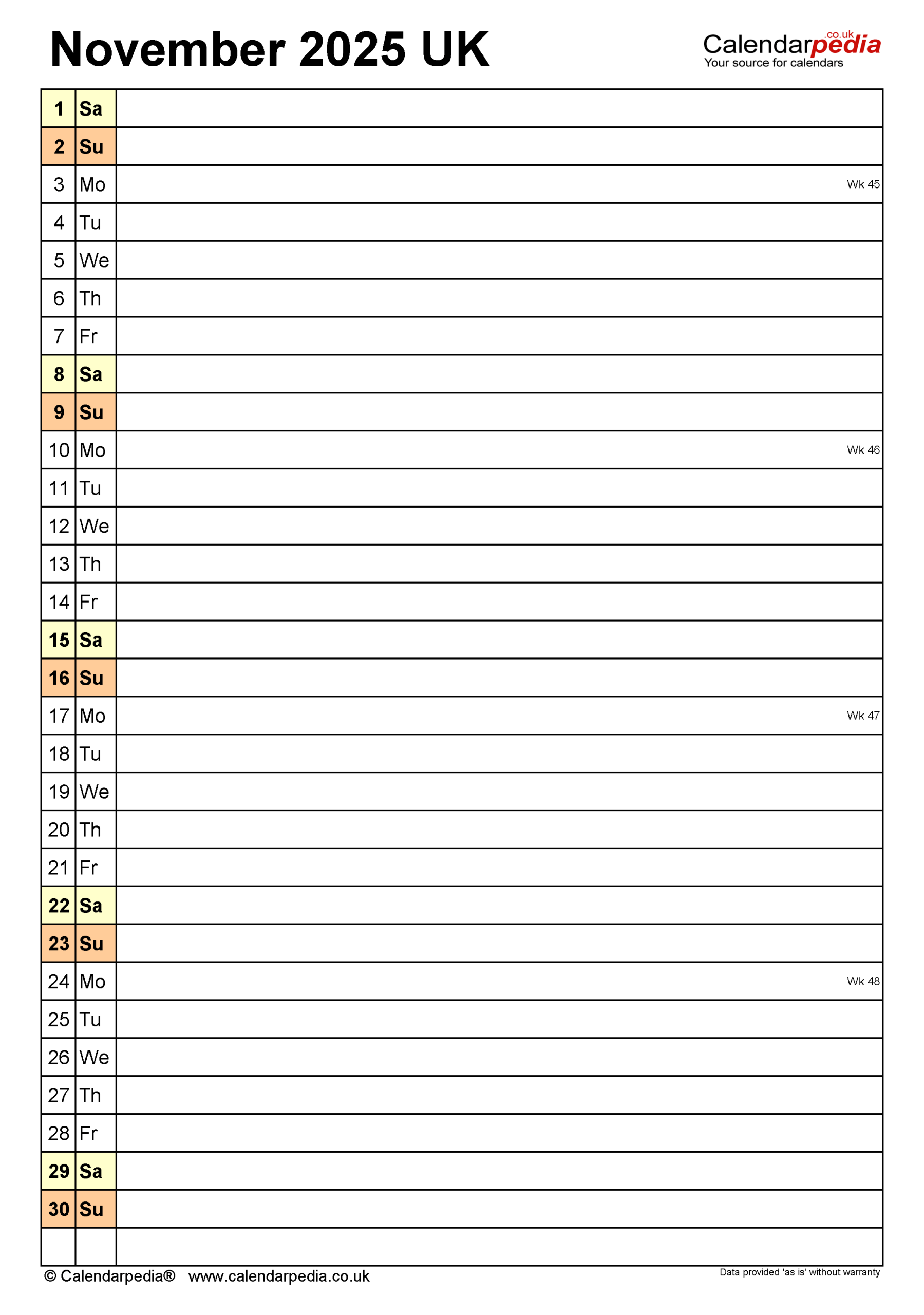 Calendar November 2025 UK With PDF Excel And Word Templates