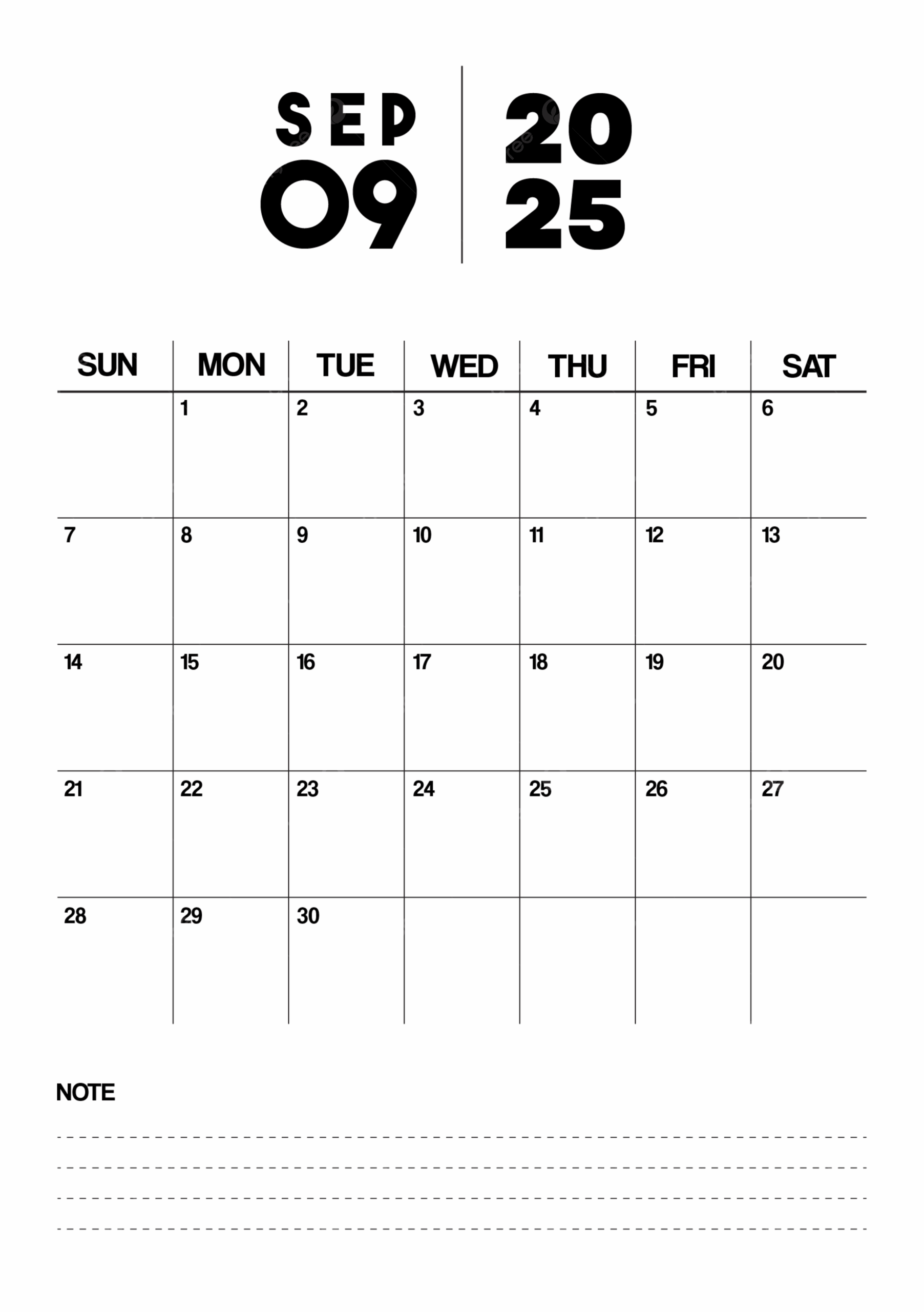 Printable Monthly Calendar Planner Template For September 2025 In Minimalist Style And Portrait Format Vector Template Download On Pngtree