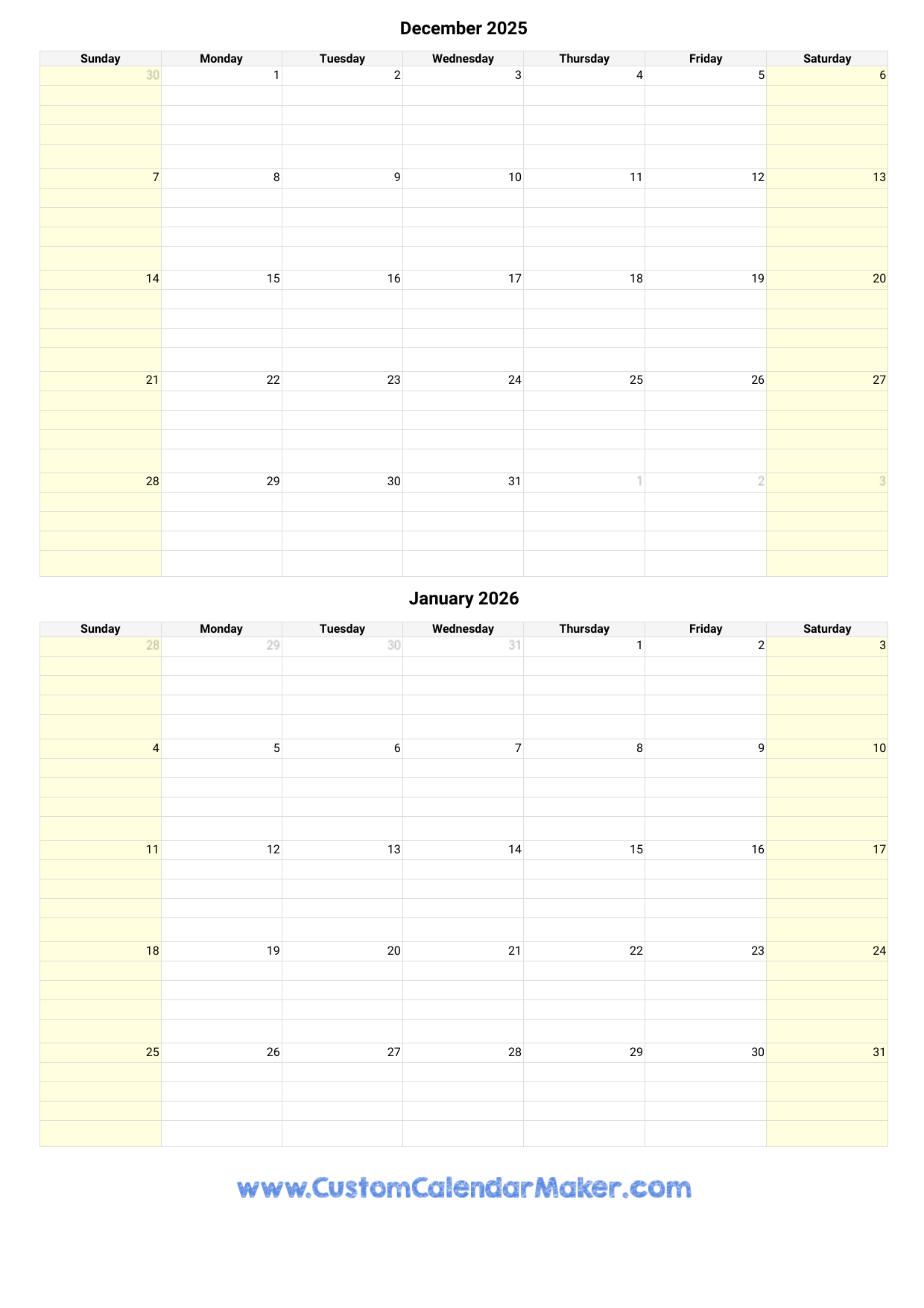 December 2025 And January 2026 Calendar Custom Calendar Maker
