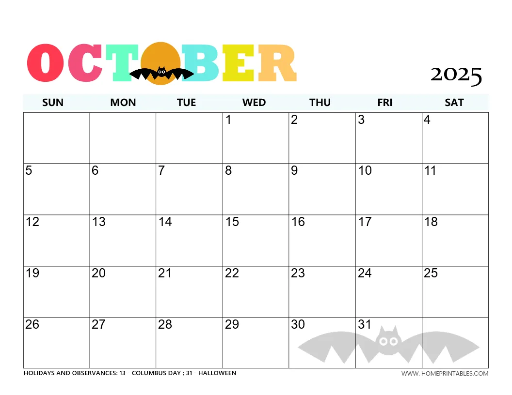October 2025 Calendar 31 Cute Free Printable Calendars