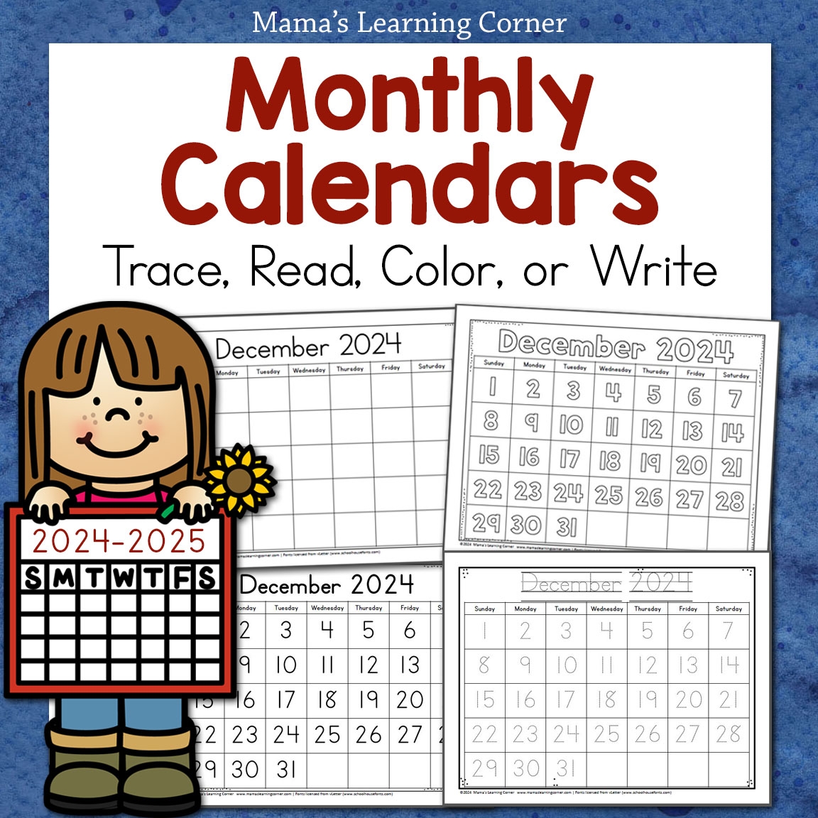 Monthly Calendars 2024 2025 Trace Read Color Or Write Mamas Learning Corner